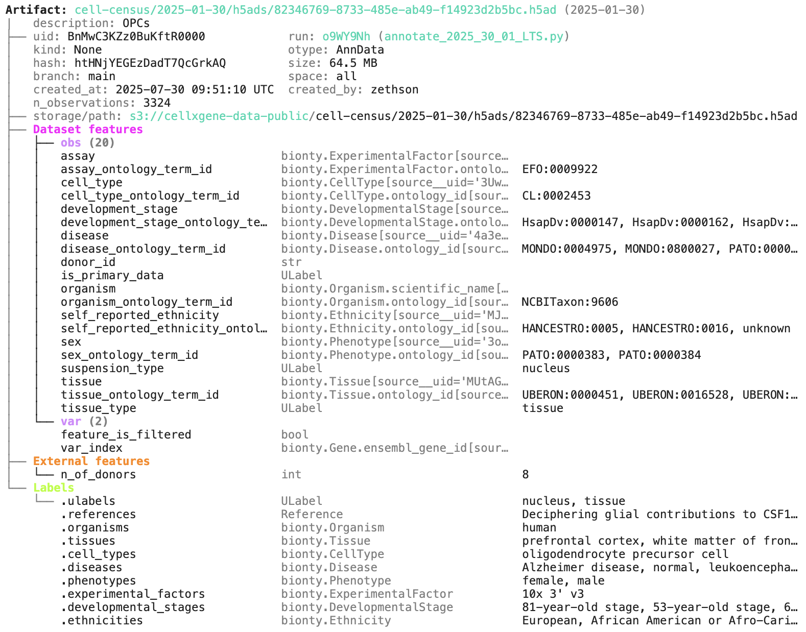 ln$Artifact$to_dataframe(include = "features") # include the feature annotations
