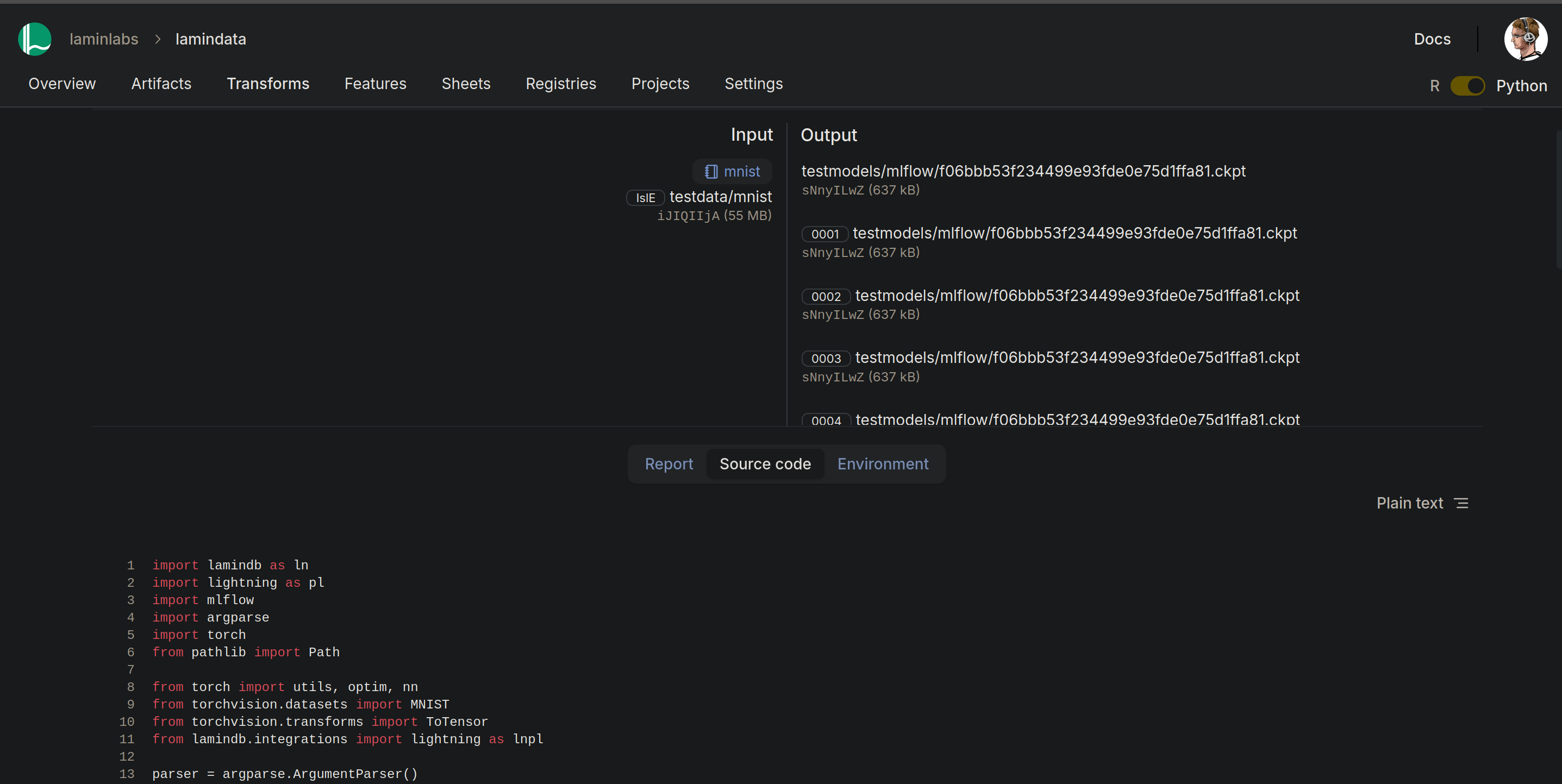 → connected lamindb: anonymous/lamin-mlops