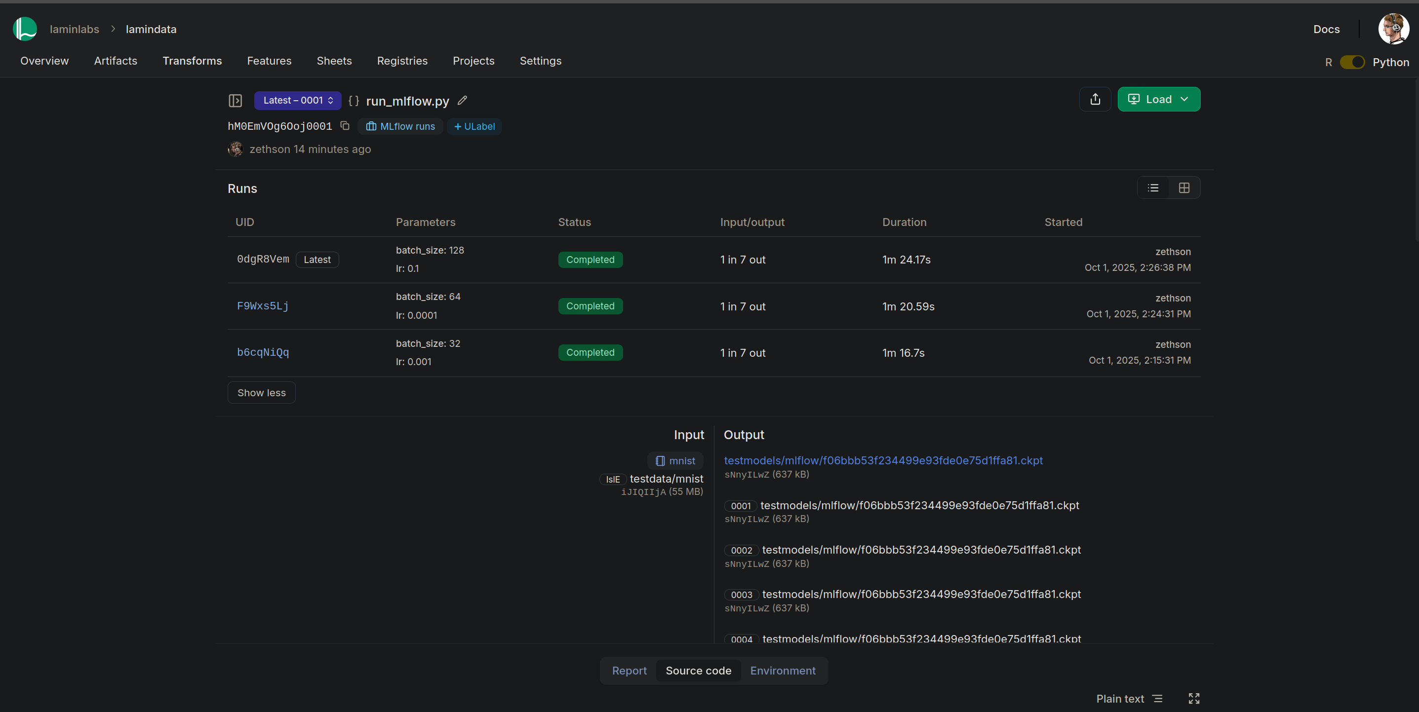 → created Transform('q971UuXXd03J0000', key='mlflow.ipynb'), started new Run('LSyrIuOBOxaUWNPW') at 2025-10-13 20:32:06 UTC