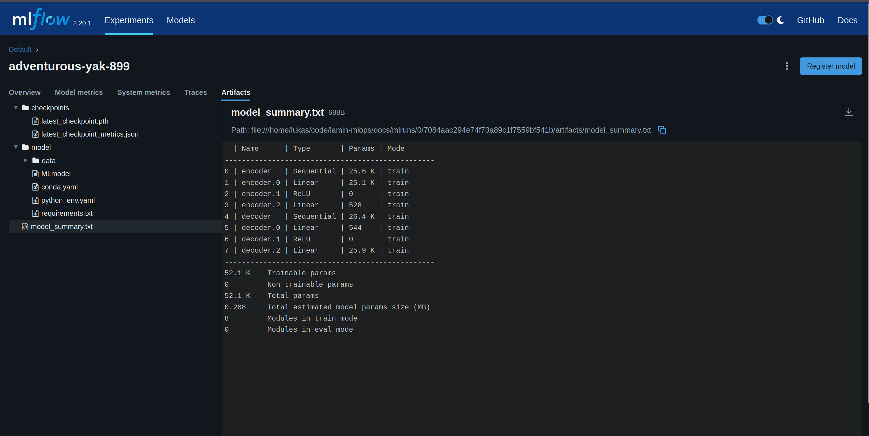 MLFlow artifact view |