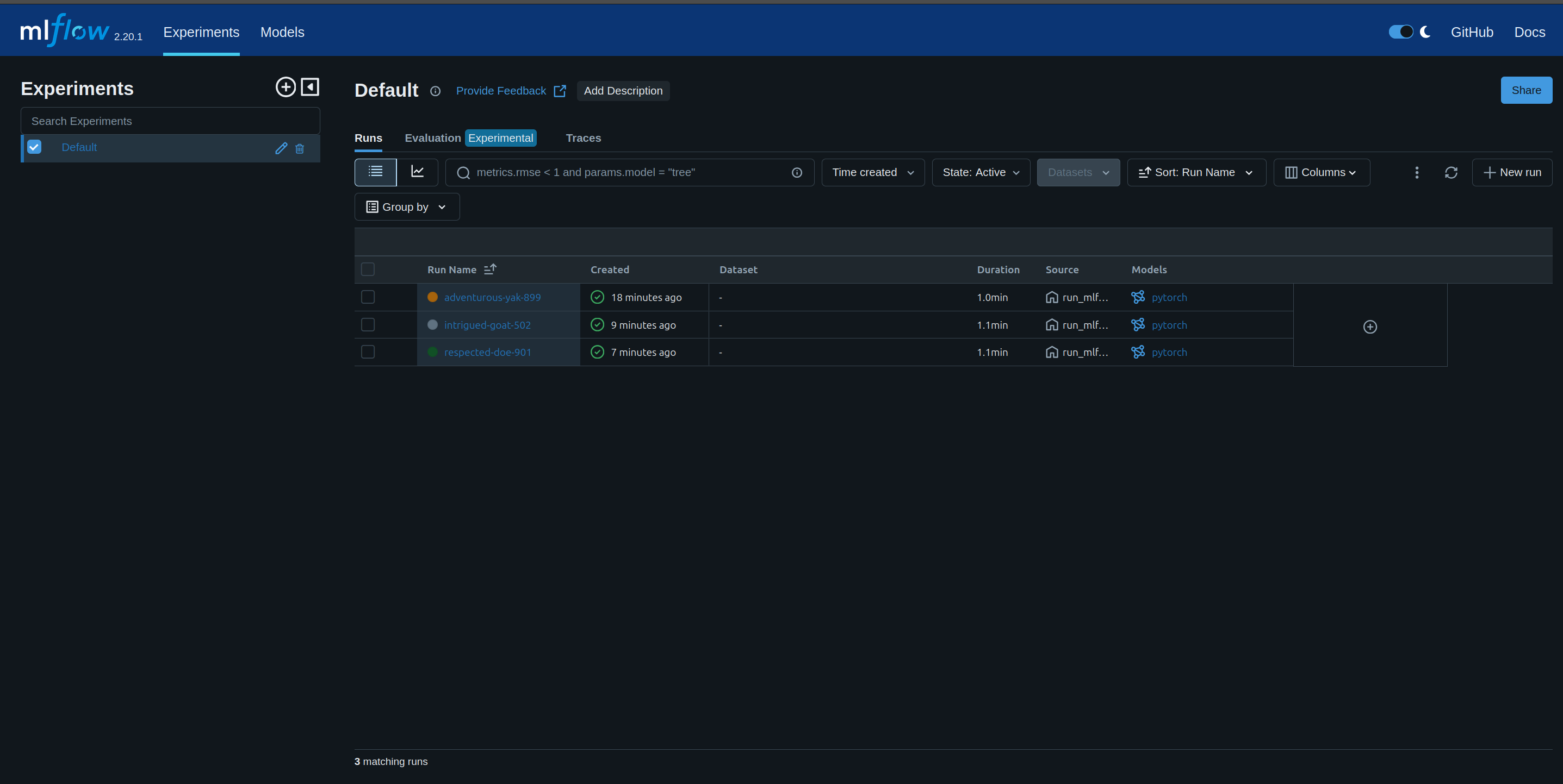 MLFlow experiment overview |