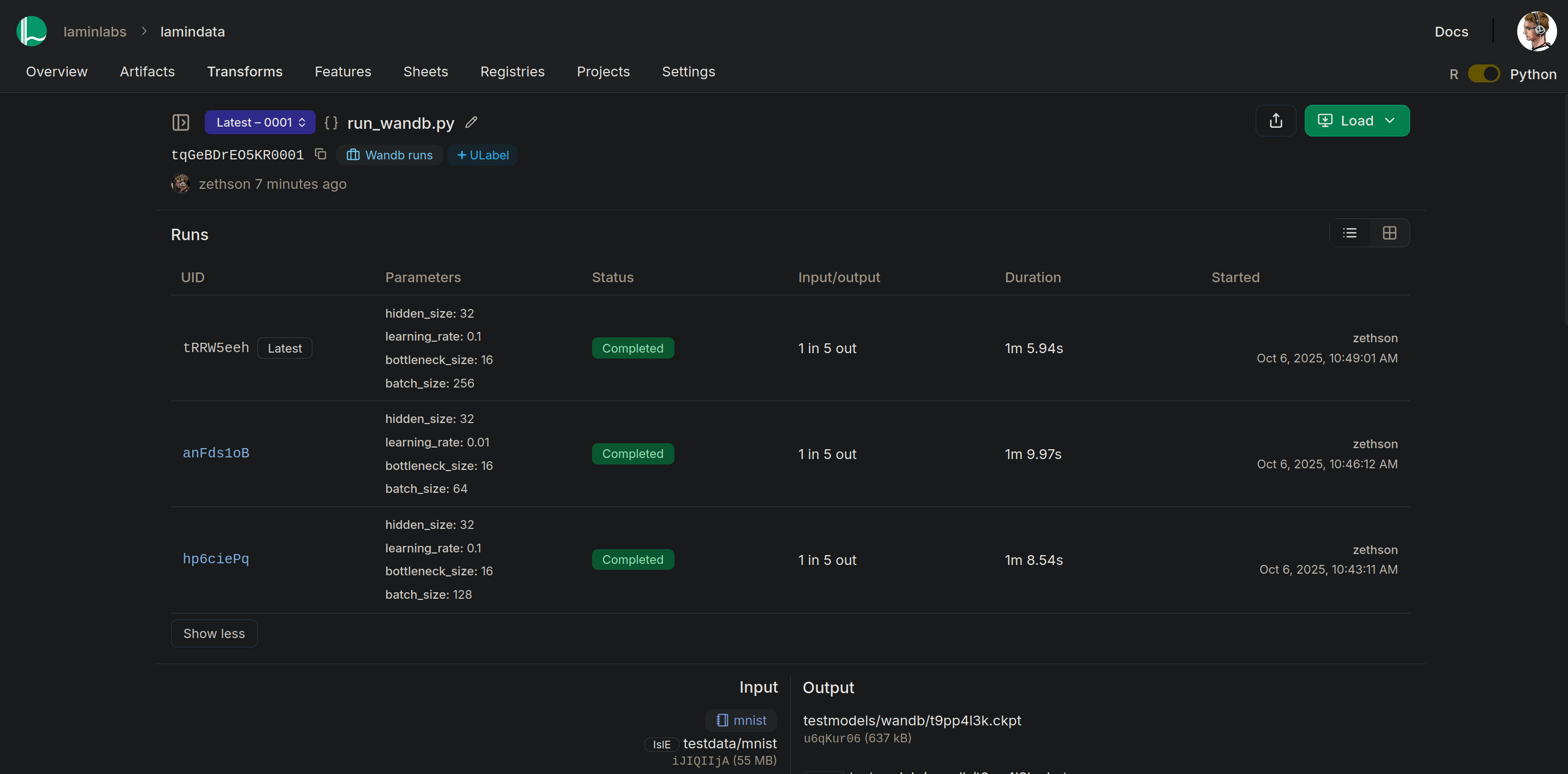 wandb: ⭐️ View project at: https://wandb.ai/lamin-mlops-demo/lamin